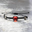Makrameearmband mit rotem Bernstein und Logomünzen